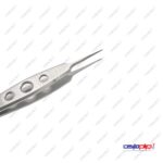 برای این منظور، این ابزار دارای یک جفت فک کوچک با سکوهای 0.3 میلی متری با سطح صاف است. این مشخصات خاص به جراحان کمک می کند تا سوزن را به راحتی نگه داشته و بافت ها را در فضاهای بسیار کوچک بخیه بزنند. همچنین، دندانهای ظریف 1×2 در نوک آن برای گرفتن بافتها و کمک به جراحی بخیه ایدهآل هستند.